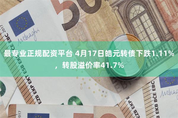 本站消息,4月17日皓元转债收盘下跌1.11%,报121.37元/张,成交额3720.47万元最专业正规配资平台,转股溢价率41.7%。